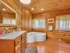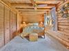 Gorgeous custom log home with metal roof and stone accents